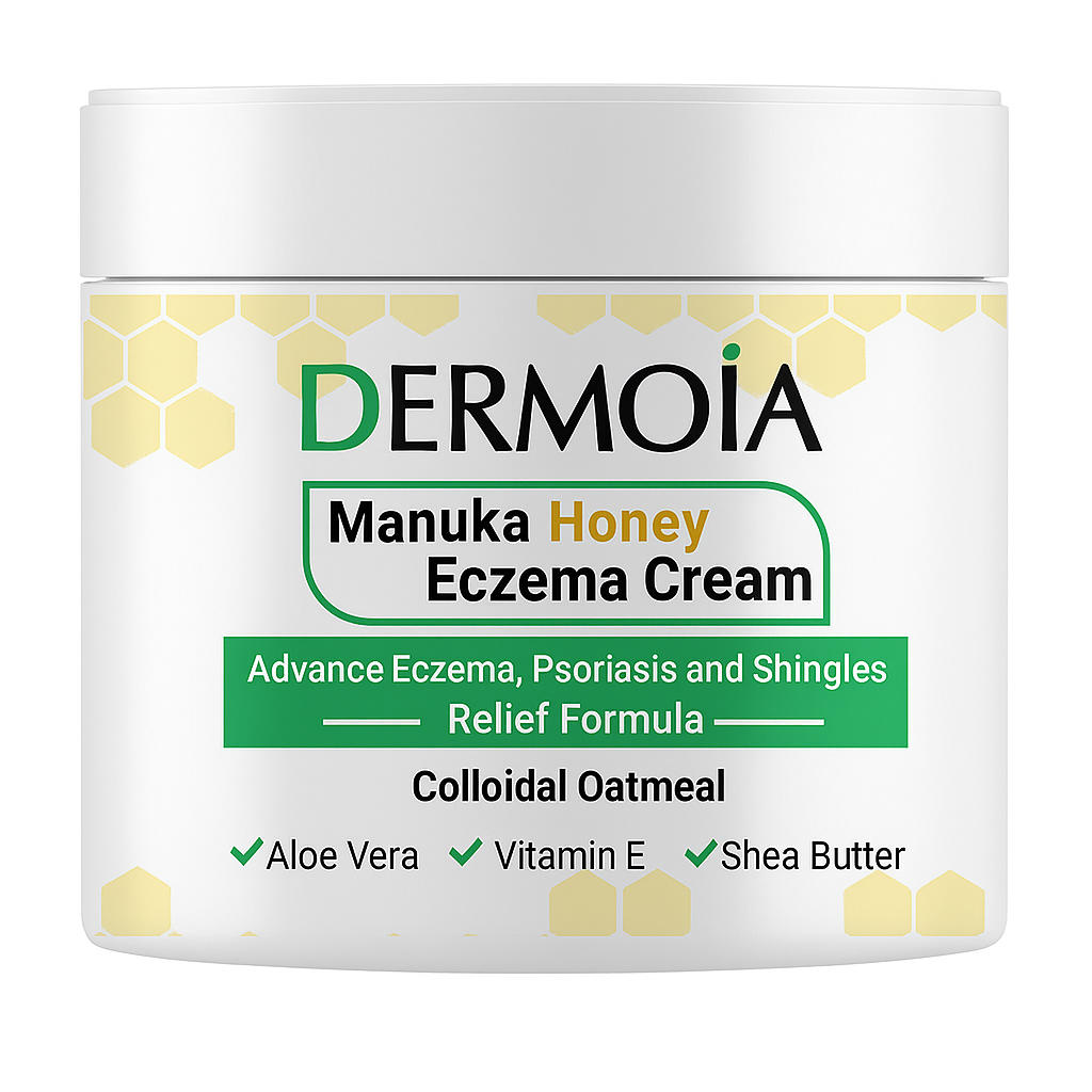 Eczema also drives ongoing inflammation, so Dermoia layers in a targeted soothing complex: aloe, calendula, chamomile, licorice root, and panthenol to quiet redness and stinging, plus antioxidant support from honey and green tea to defend against oxidative stress and secondary irritation. The cream’s richer texture keeps these actives in contact with the skin long enough to work, making it ideal for stubborn patches, hands, elbows, and night-time repair.